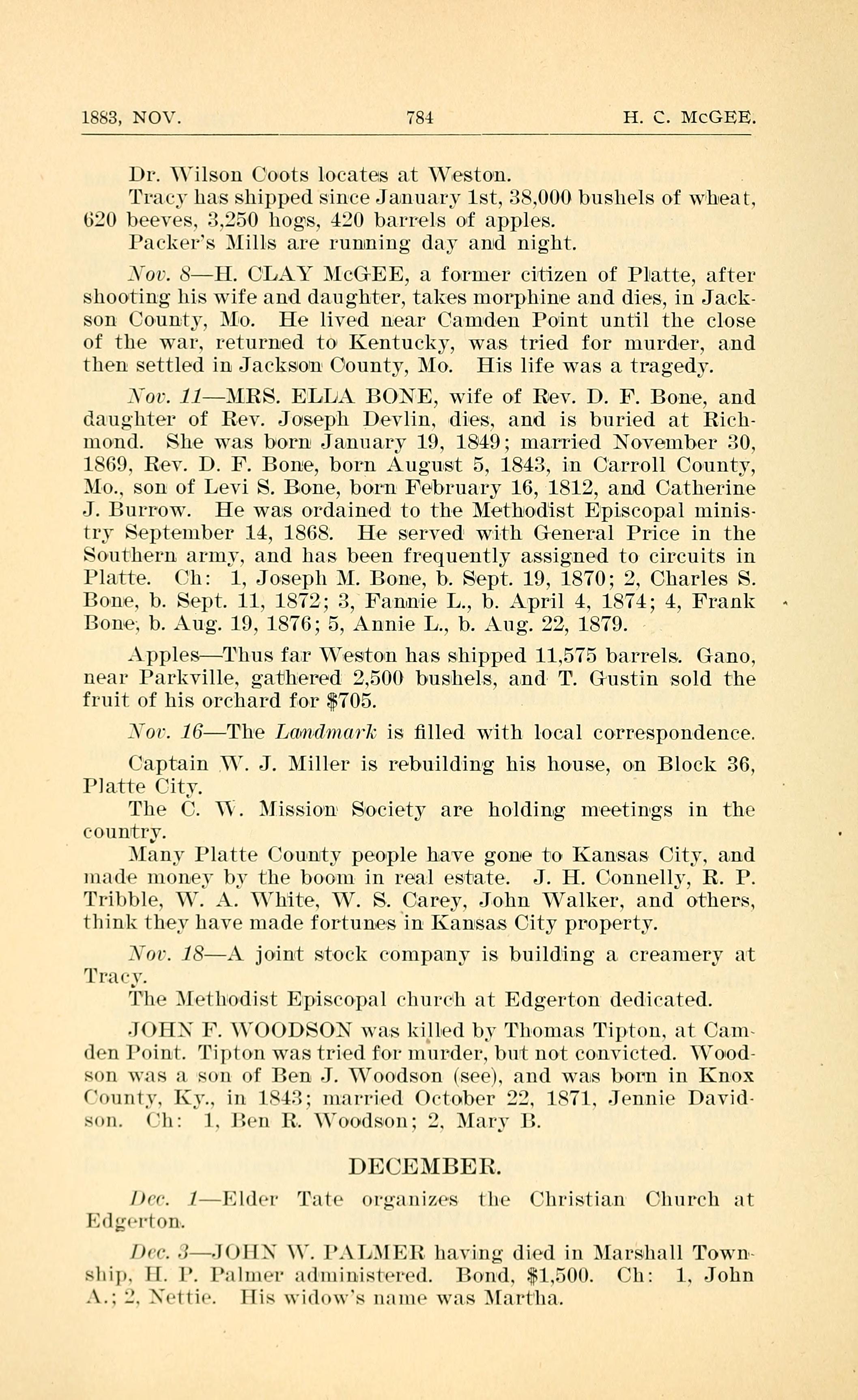 Nov. 8 H. CLAY MCGEE, a former citizen of Platte, after