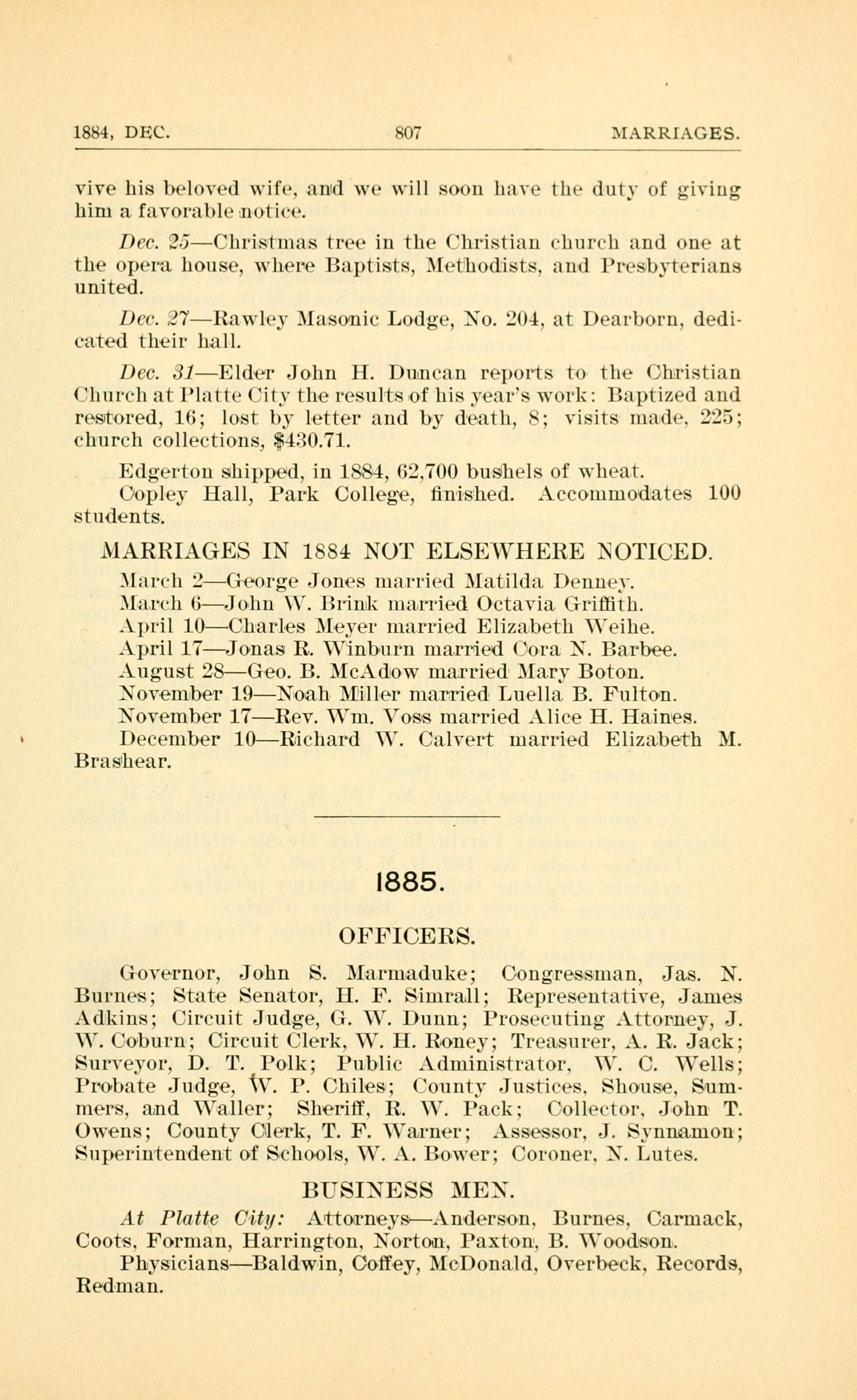 1884, DEC. 807 MARRIAGES.