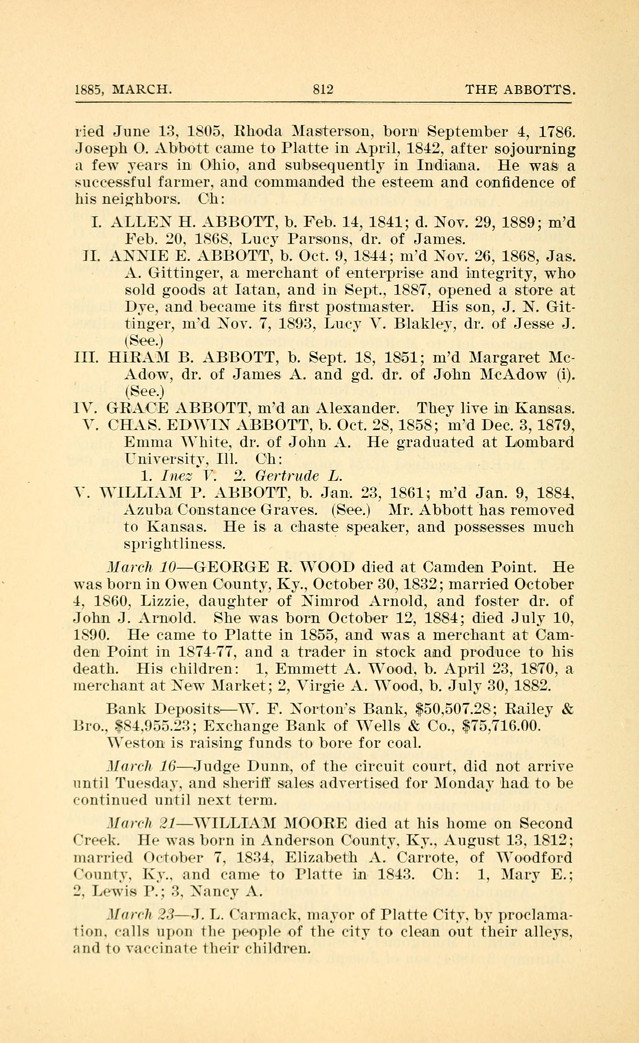 III. HIRAM B. ABBOTT, b. Sept. 18, 1851; md Margaret Mc-