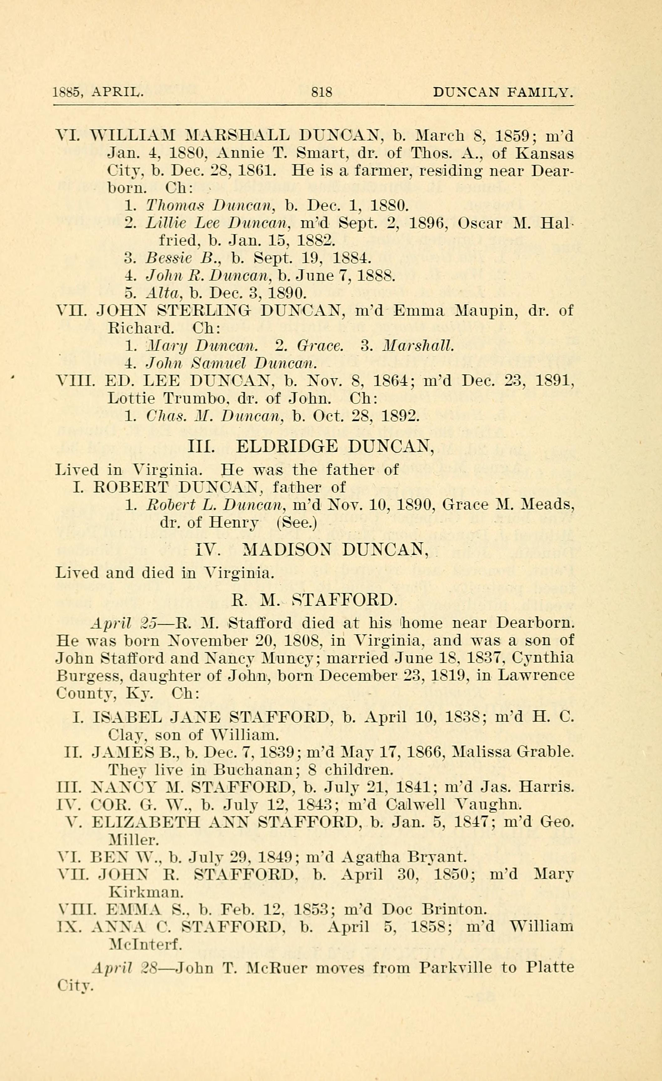VII. .lOII. R. STAFFORD. b. April 30, 1850; md Mary