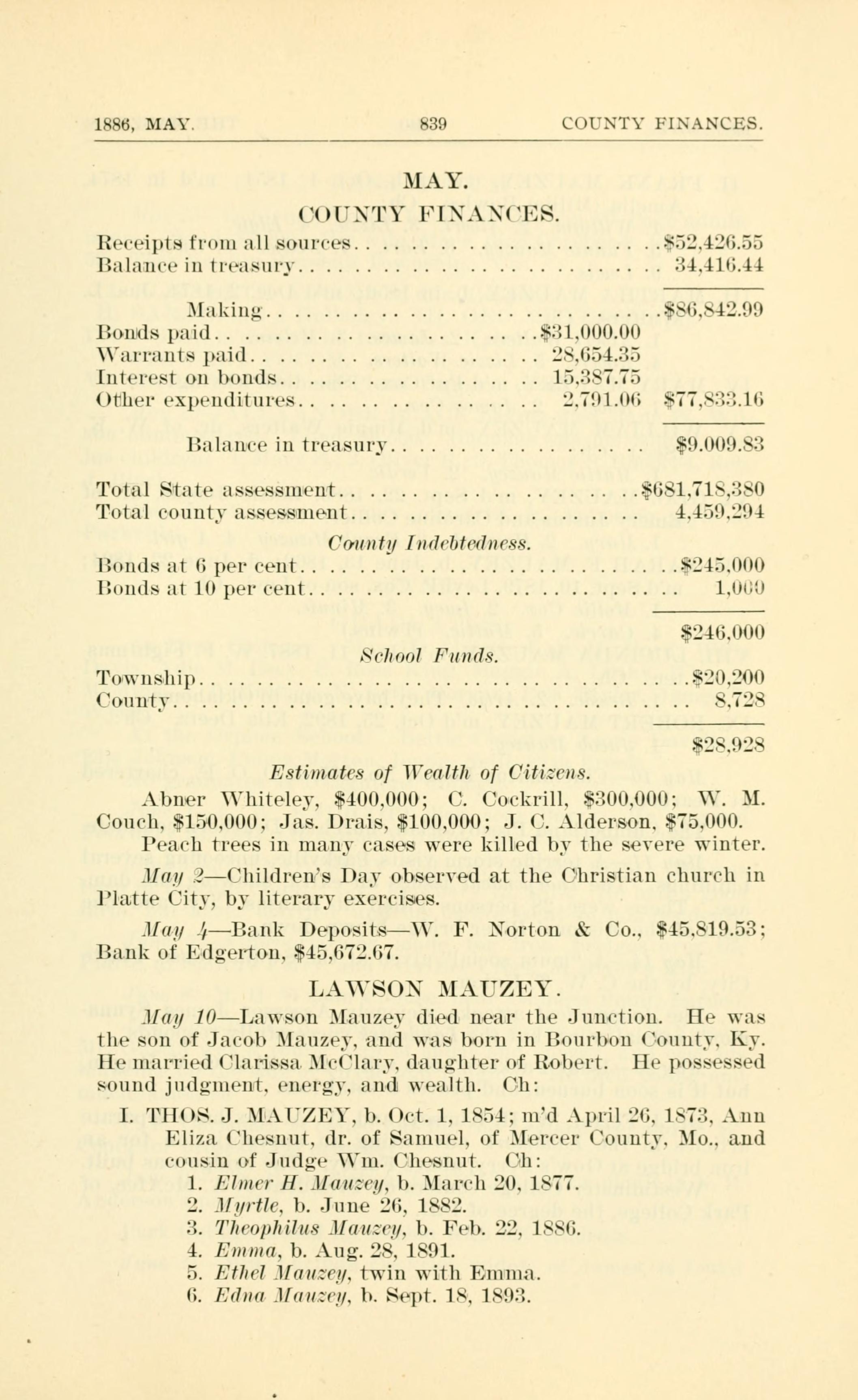 the son of Jacob Mauzey. and was born in Bourbon (,-ount). Ky.