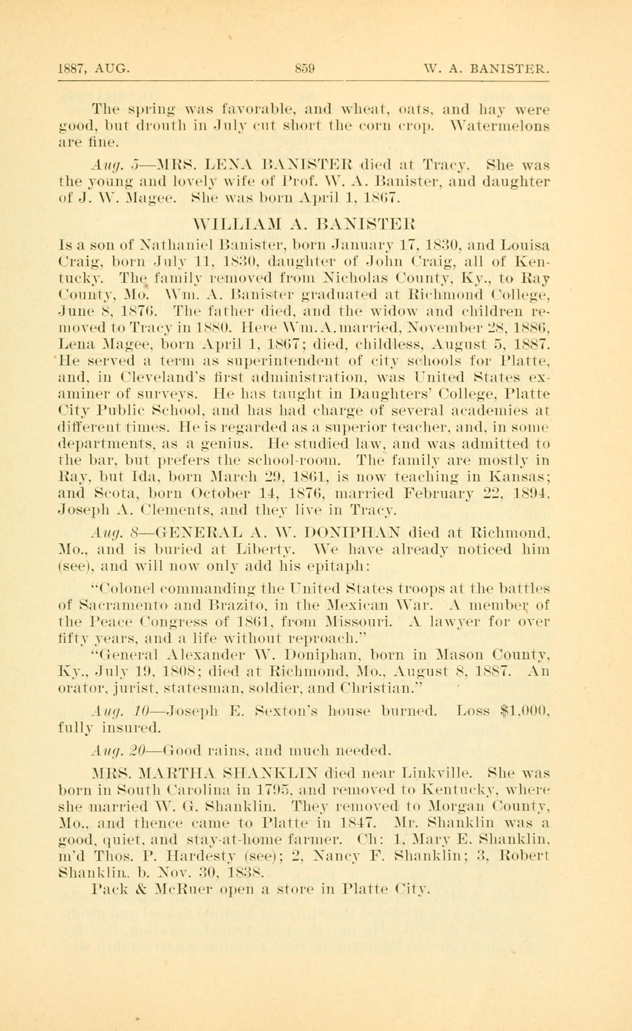 GENERAL ALEXANDER W. DONIPHAN died at Richmond, MO.