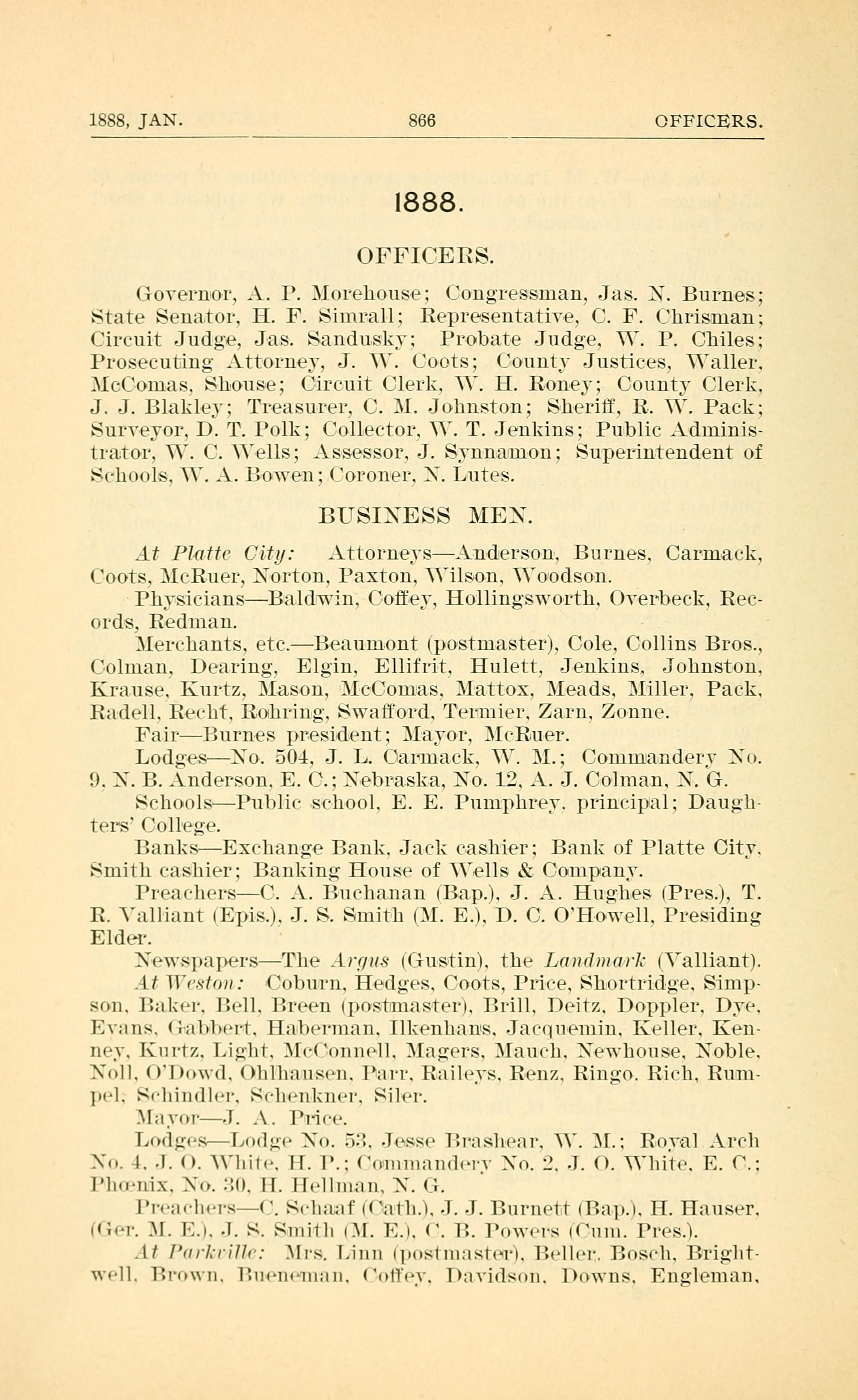 1888, JAN. 866 OFFICERS. 1888. OFFICERS. BUSINESS HEN.