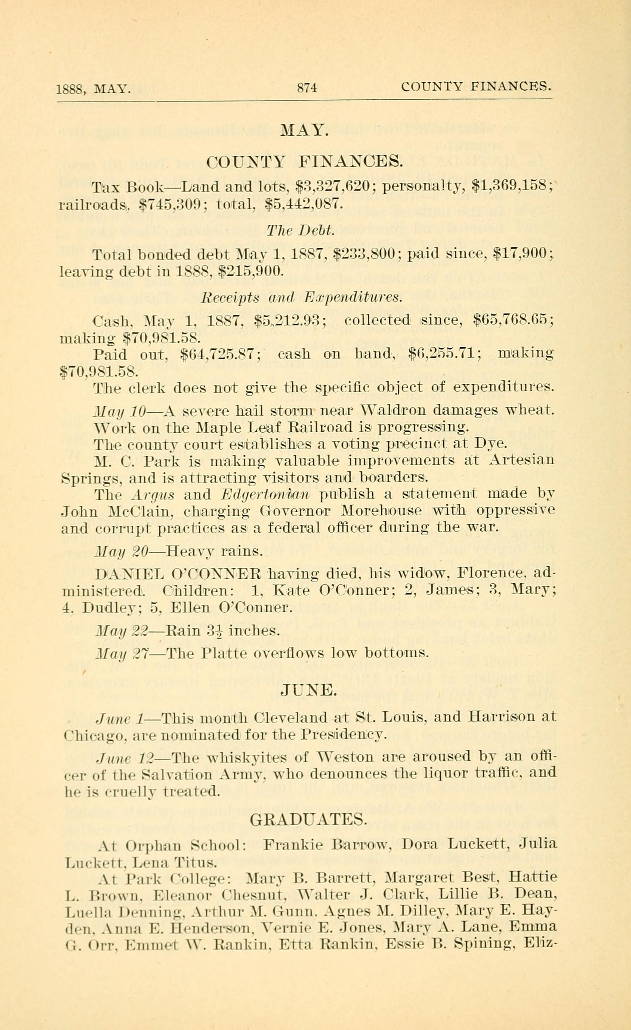 Total bonded debt Miatv 1. 1887, $23: ,800; paid since, $17,900;