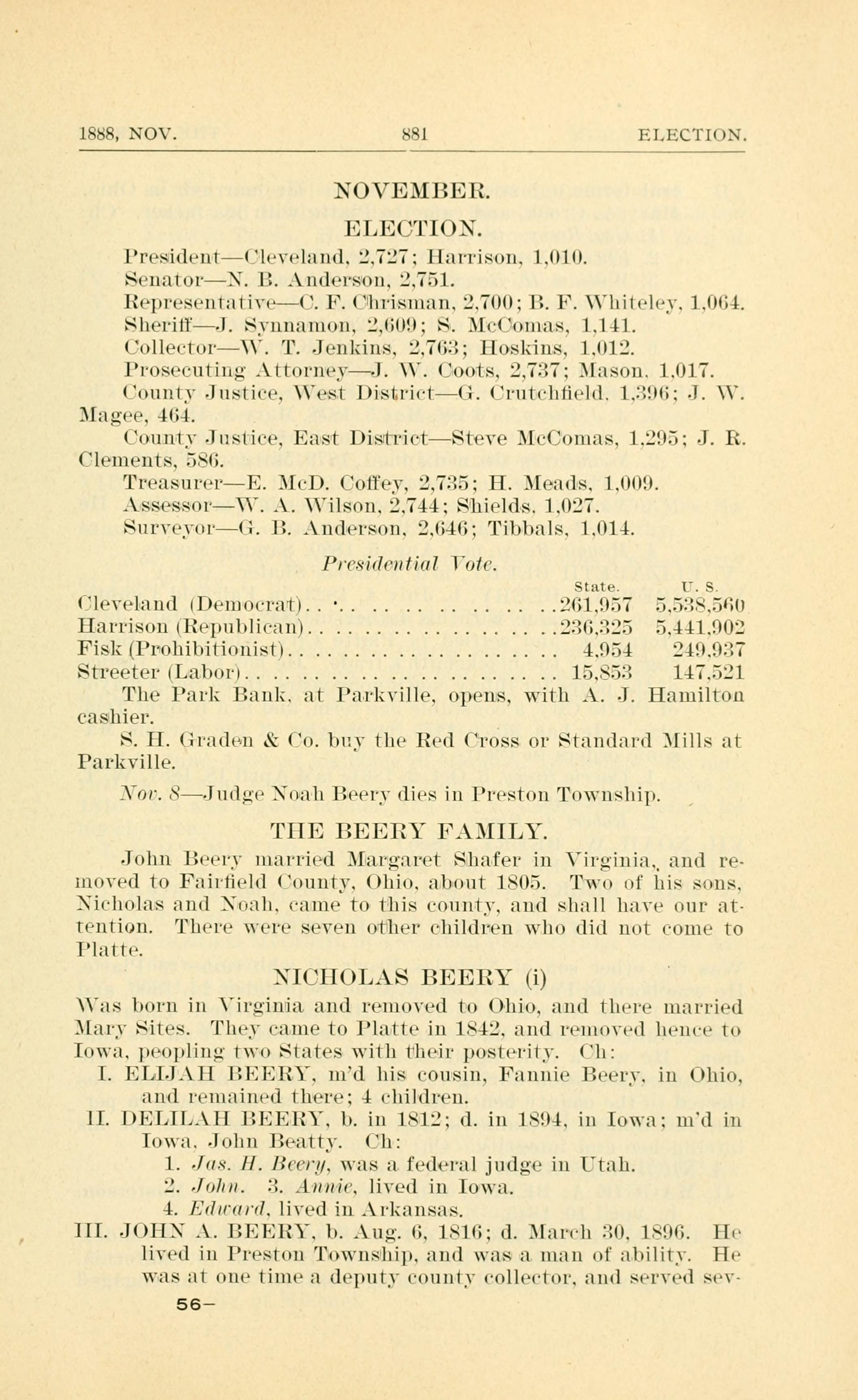 1888, NOV. 881 ELECTION