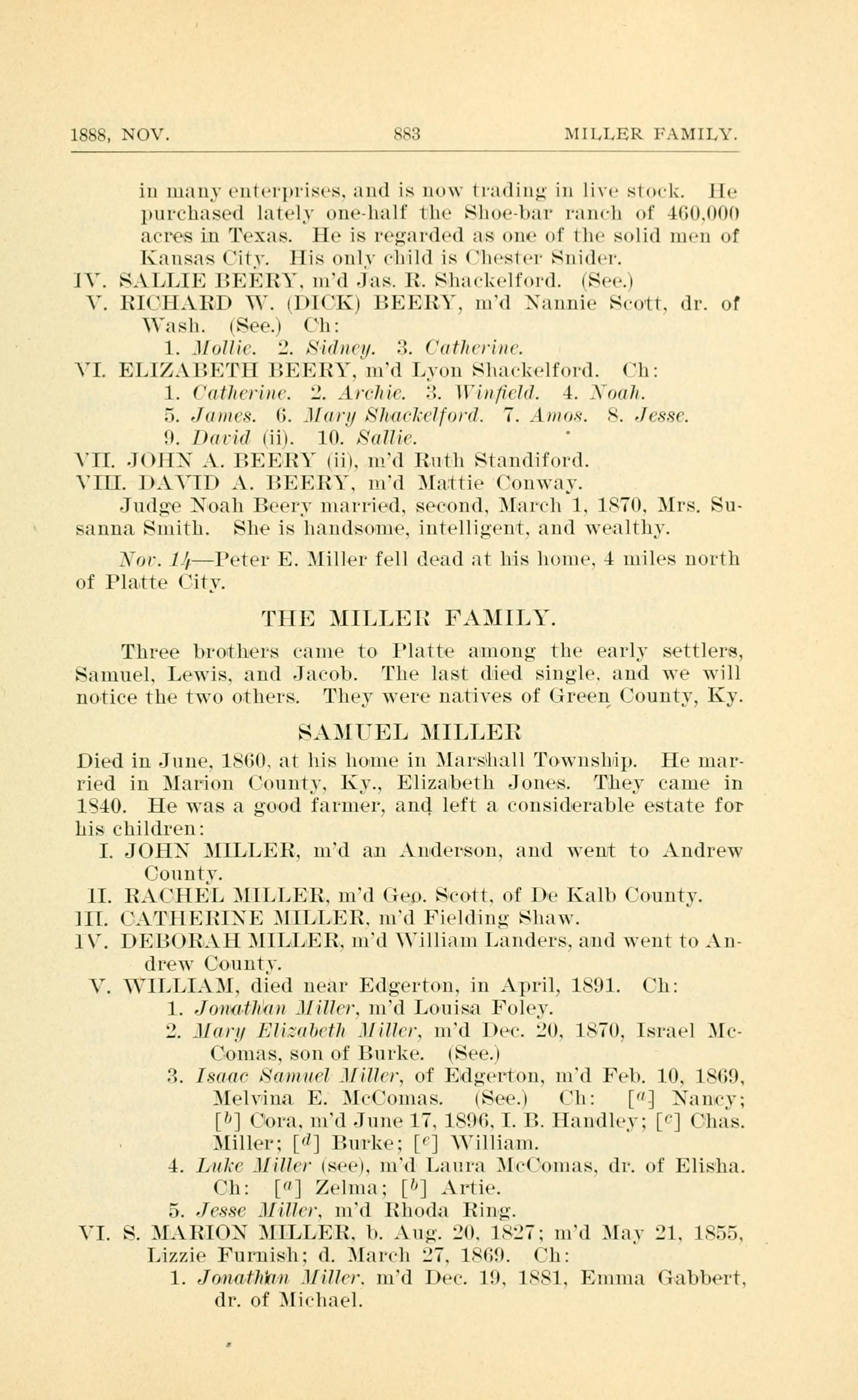 Three brothers came to Platte among the early settlers, Samuel, Lewis. and Jacob. The last died single, and we will notice the two others. They were natives of Green, County, Ky.