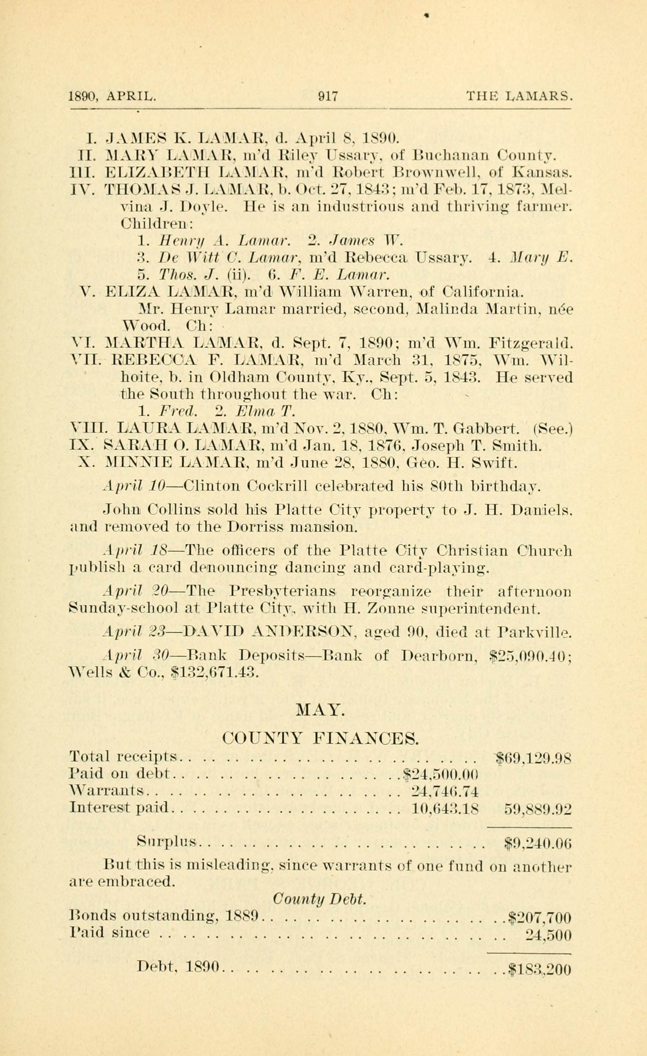IV. THOMAS J. LAMAR, married Melvina J. Doyle