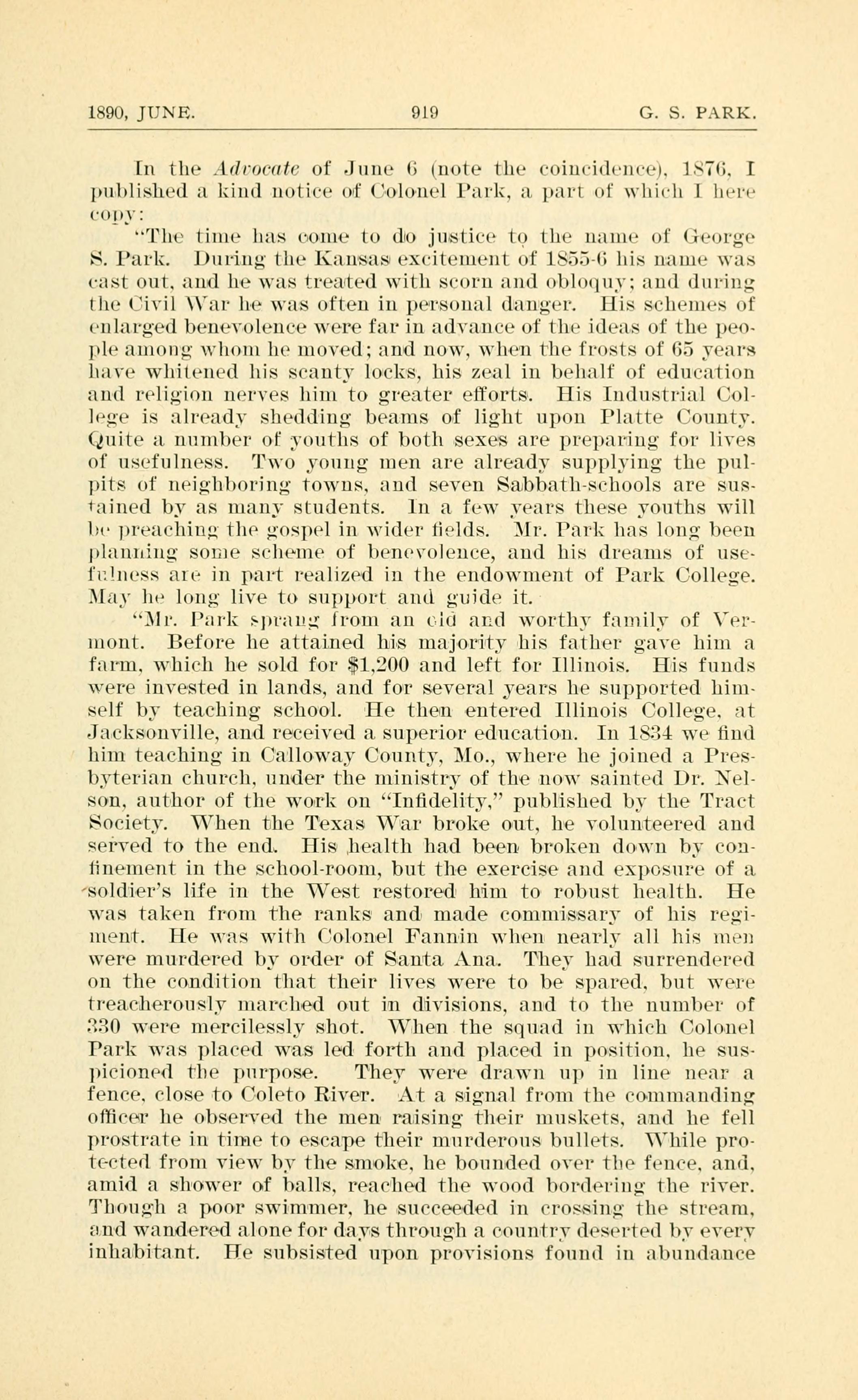 S. Park. During the Kansas: exriteinent of 1553-43 his name was