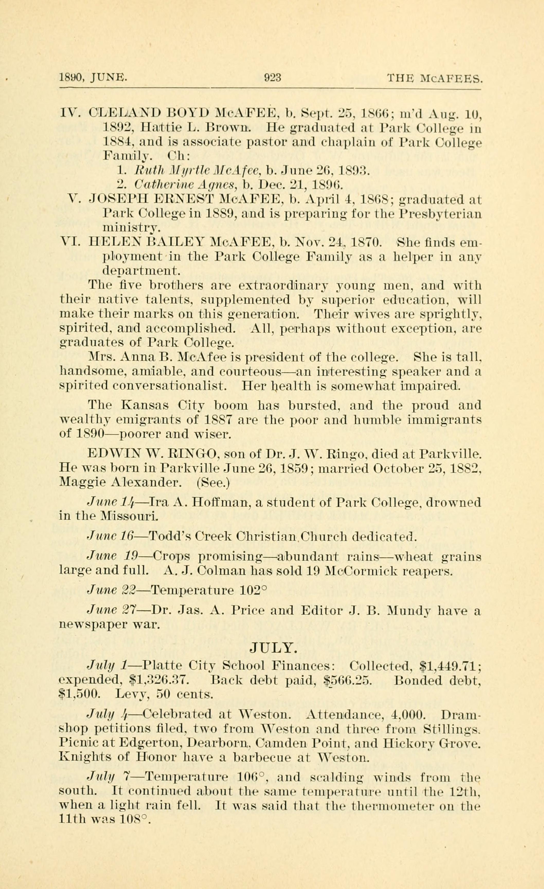 He was born in Parkville J11ne 26, 1859; married October 25. 1882.