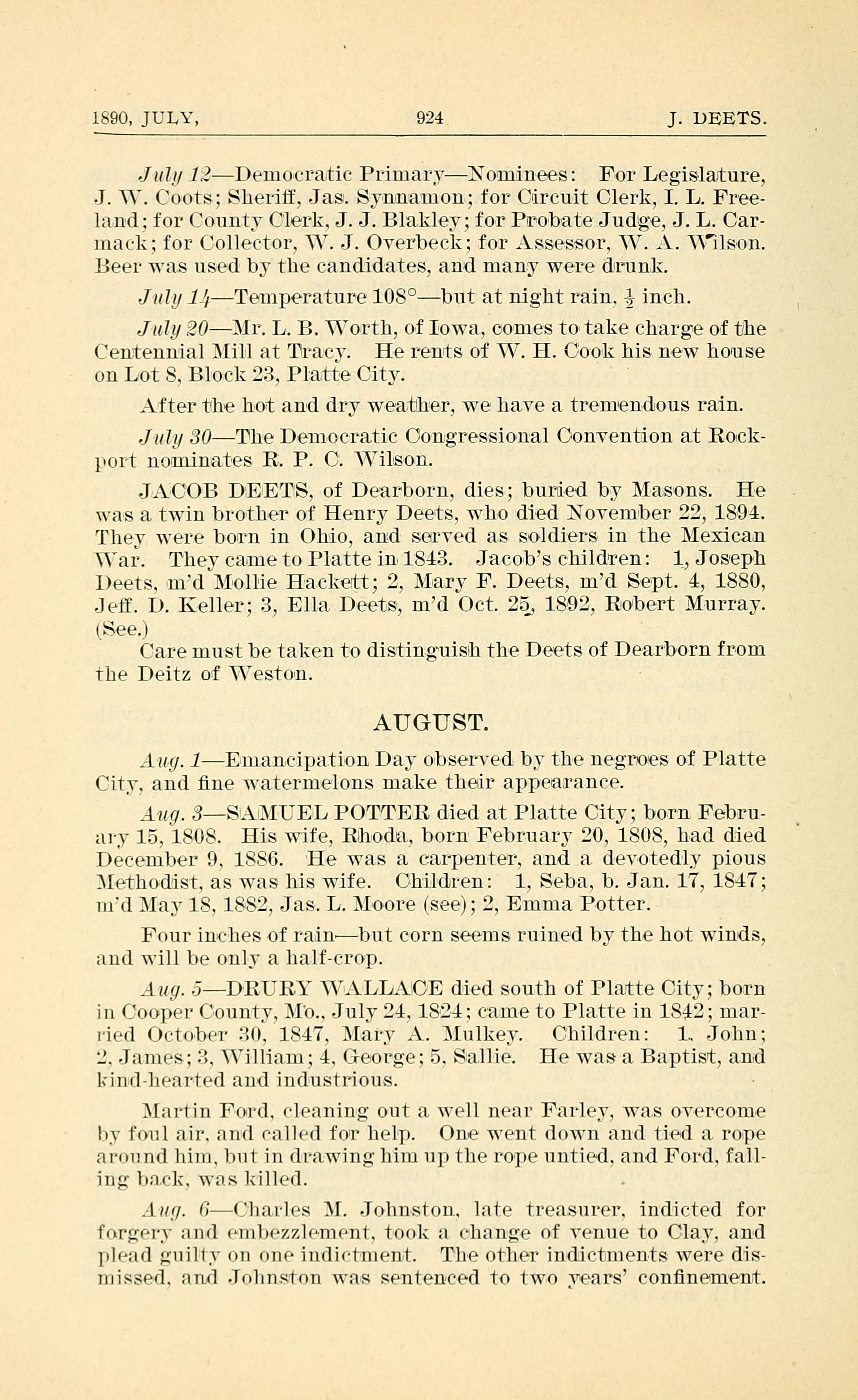 .1 ug. 3SA~)IUEL POTTER died at Platte City; born Febru-