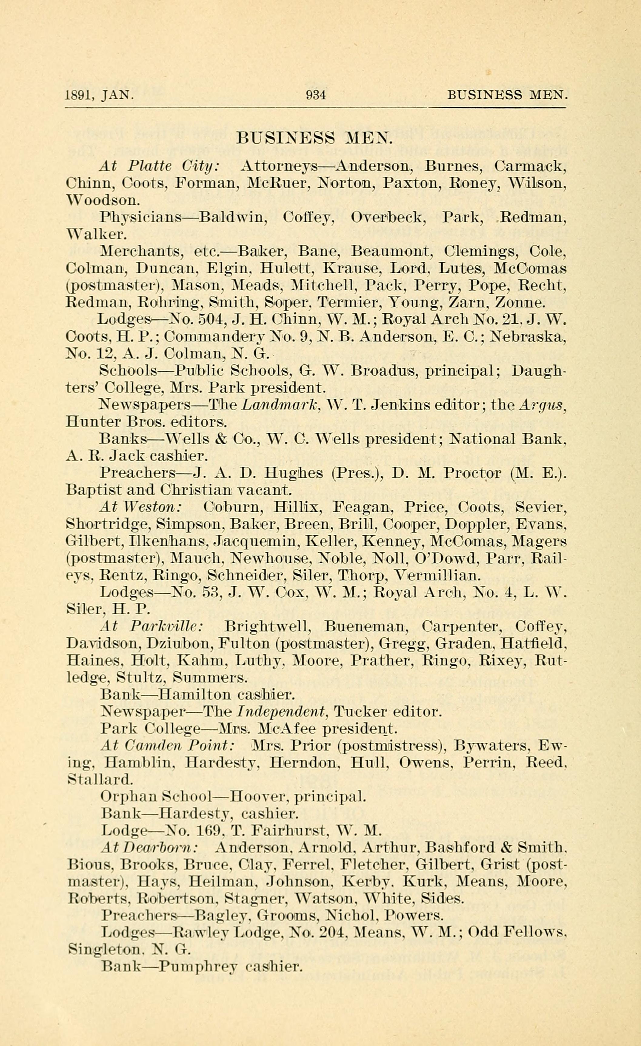 1891, JAN. 934 BUSINESS MEN. BUSINESS MEN.