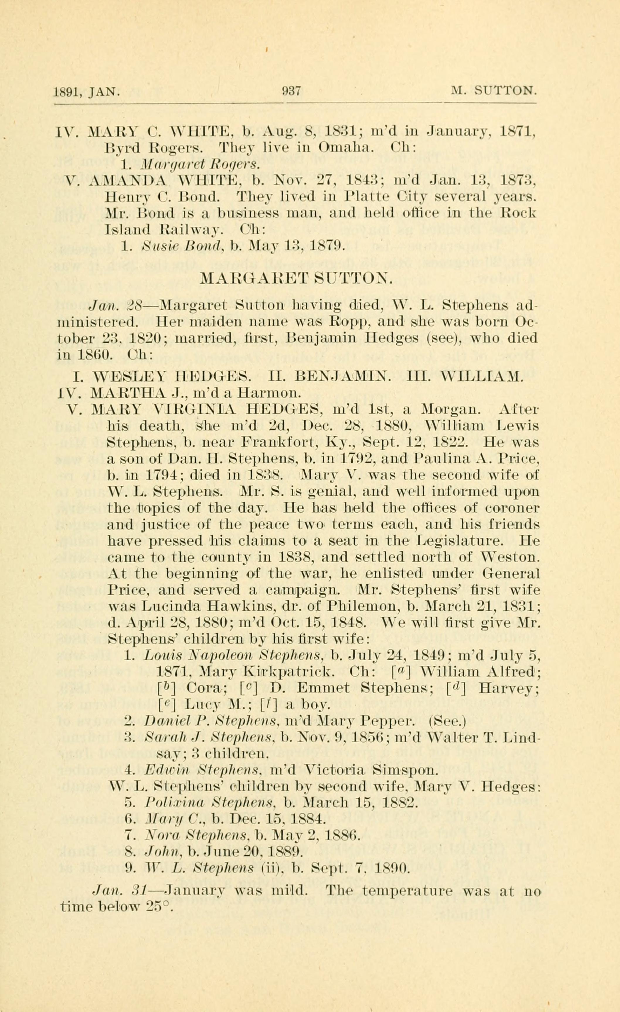 W. L. Stephens children by second wife Mary V. Hedges
