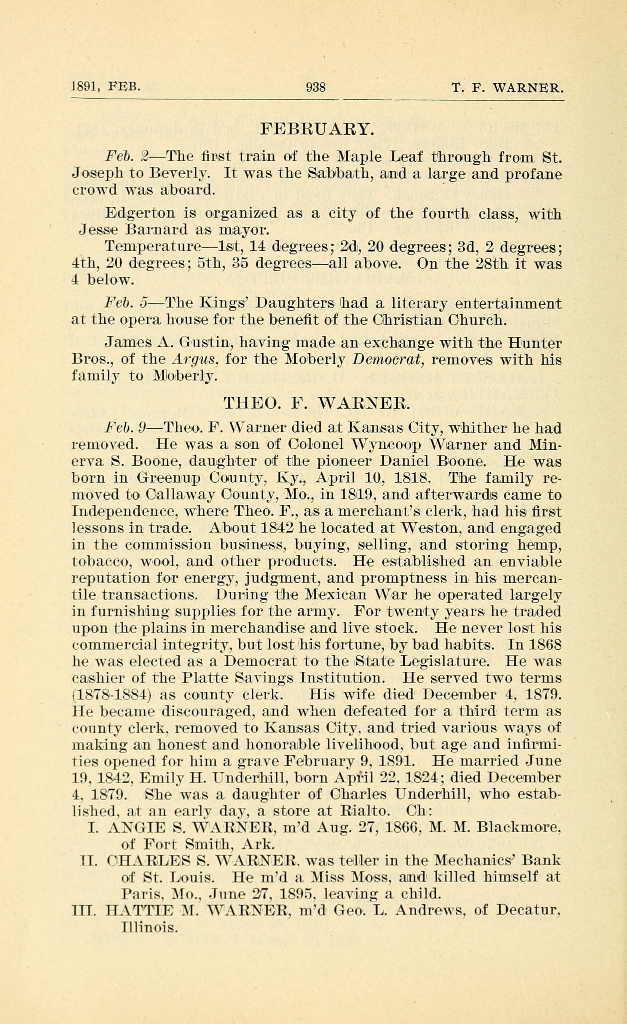 Feb. 9.lheo-. F. Varner died at Kansas City, Whither he had