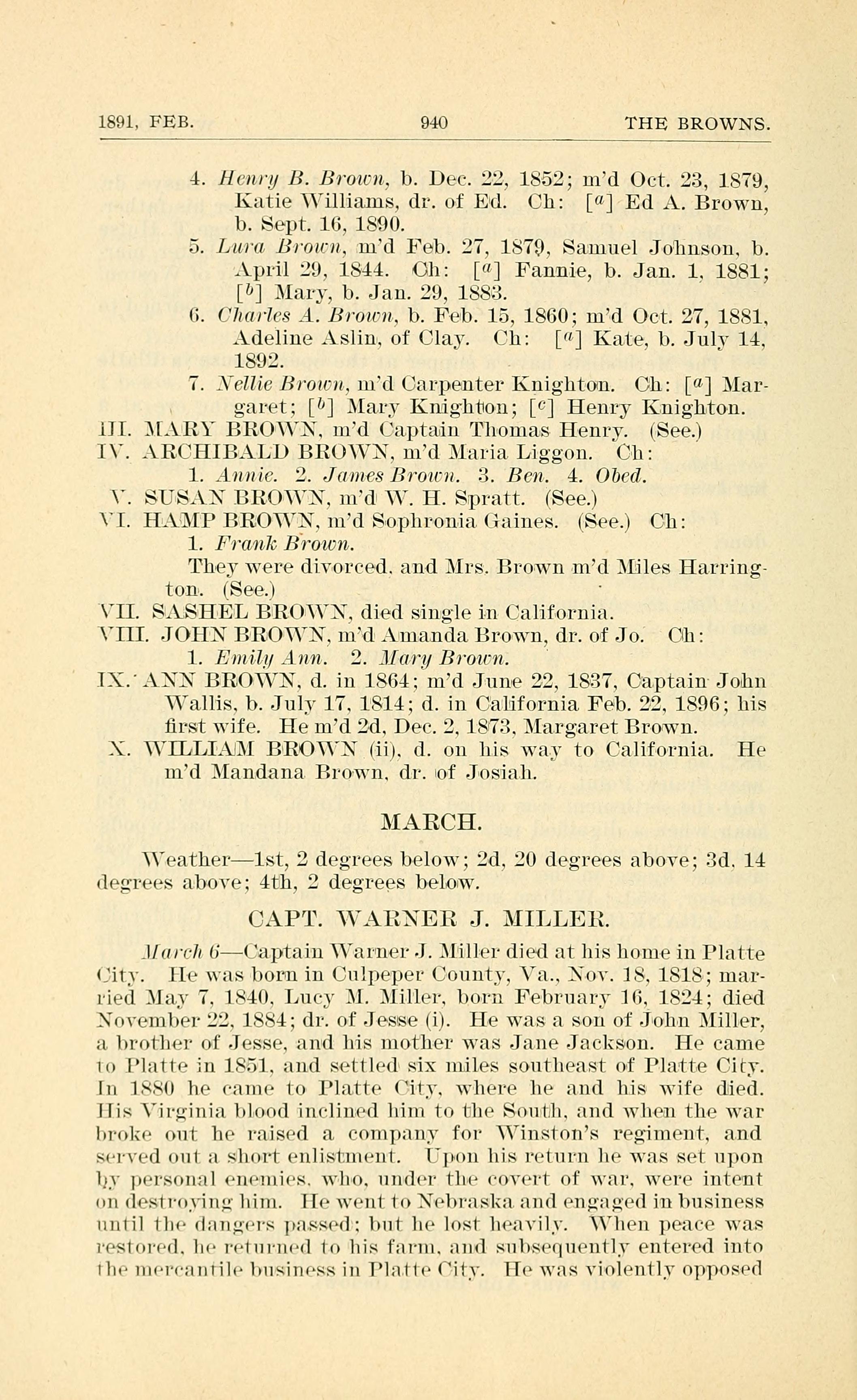 4. Henry B. Brown, married Katie Williams, dr. of Ed. Williams