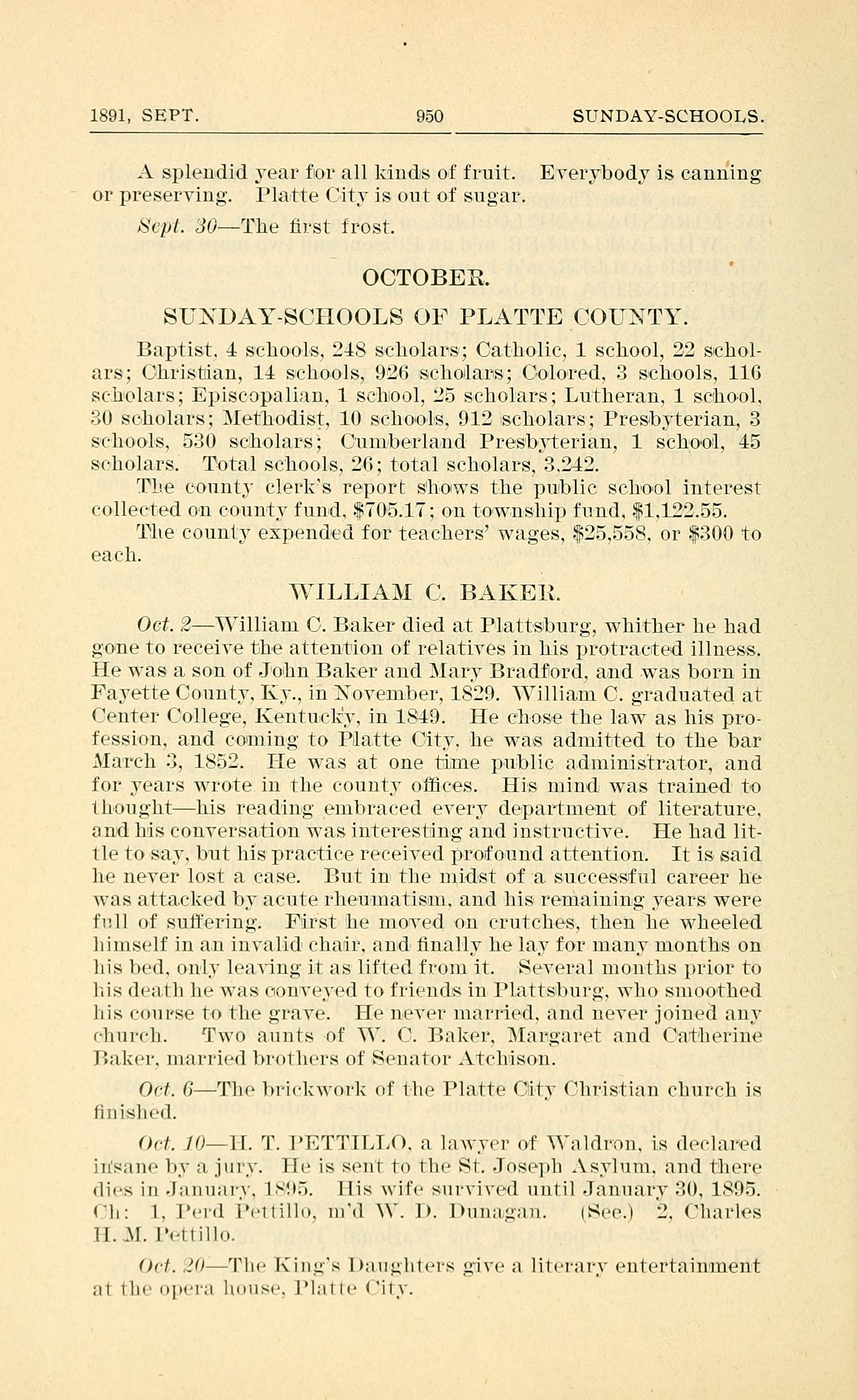 Oct. 2Willian1 G. Baker died at Plattsnburg, Whither he had