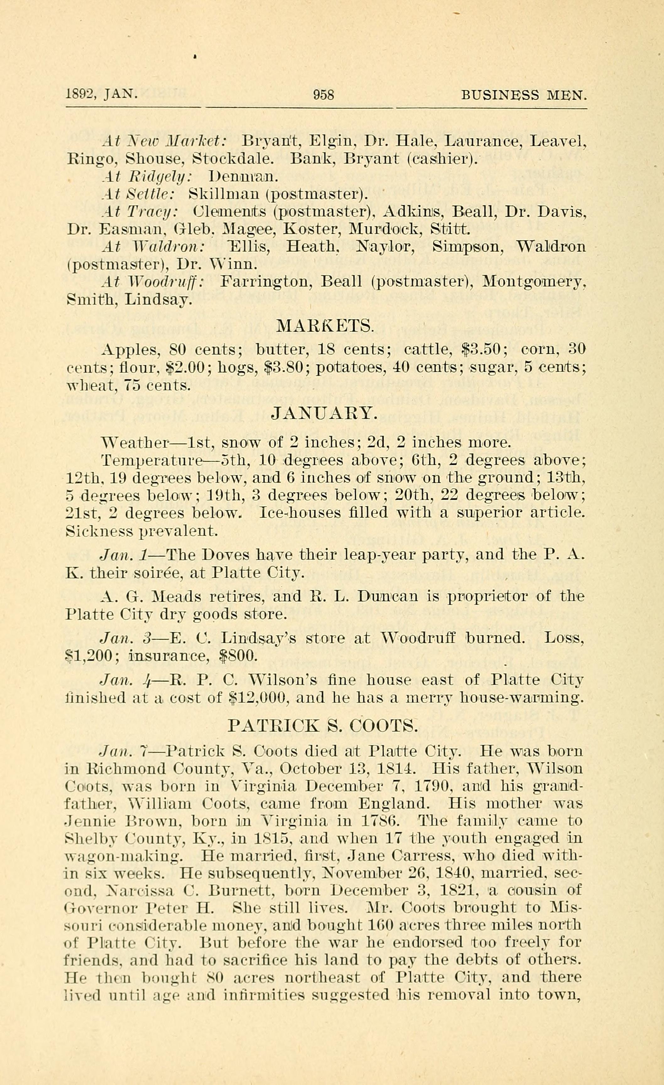 Jun. 71at1-ick S. Coots died at Plaitte City. He was born