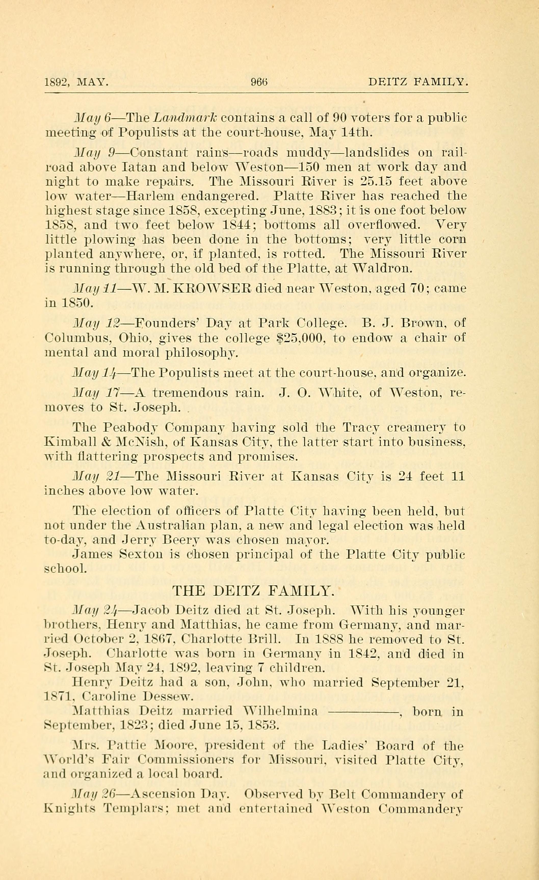 1892, MAY. 966 DEITZ FAMILY .