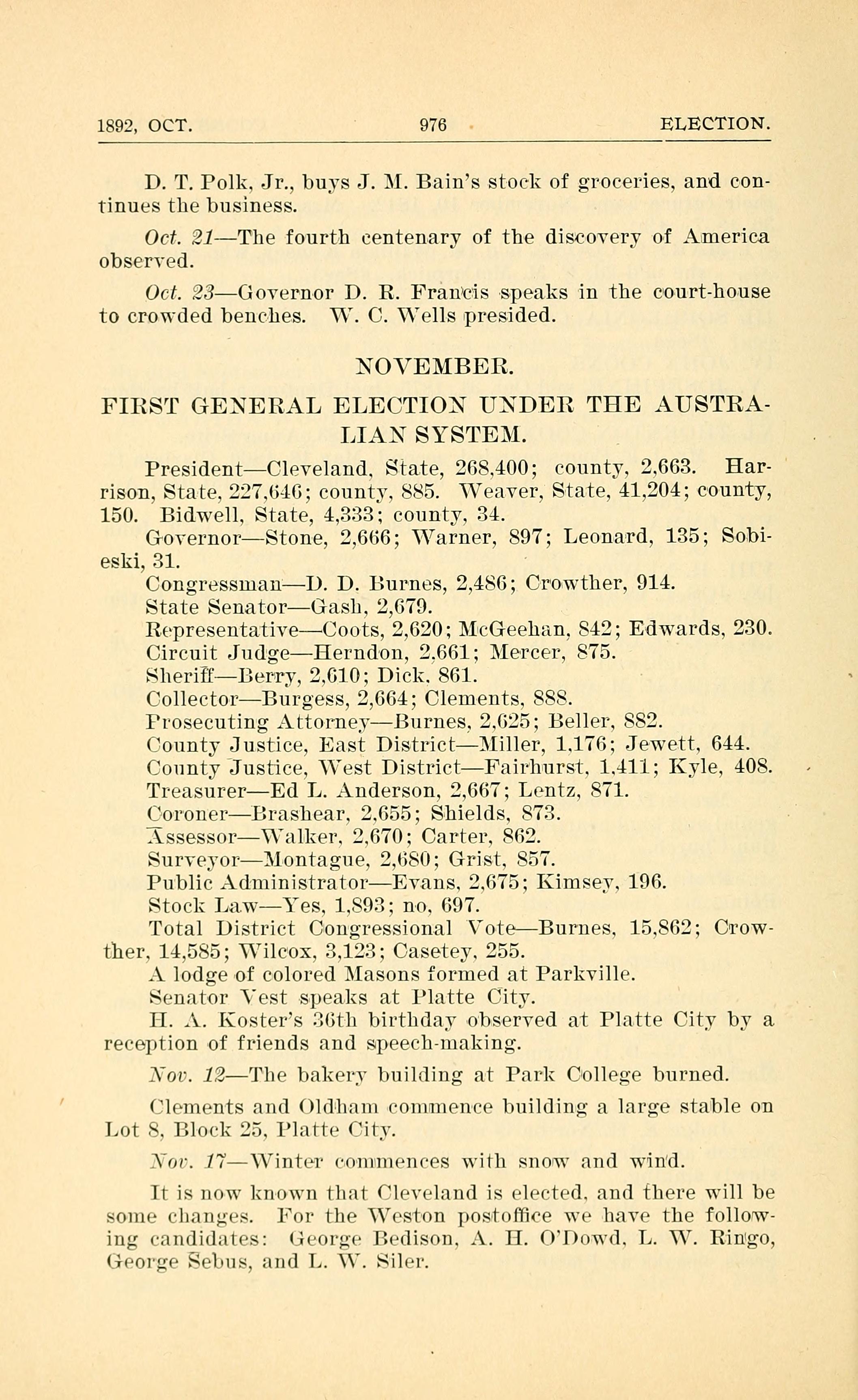 1892, OCT. 976 - ELECTION.