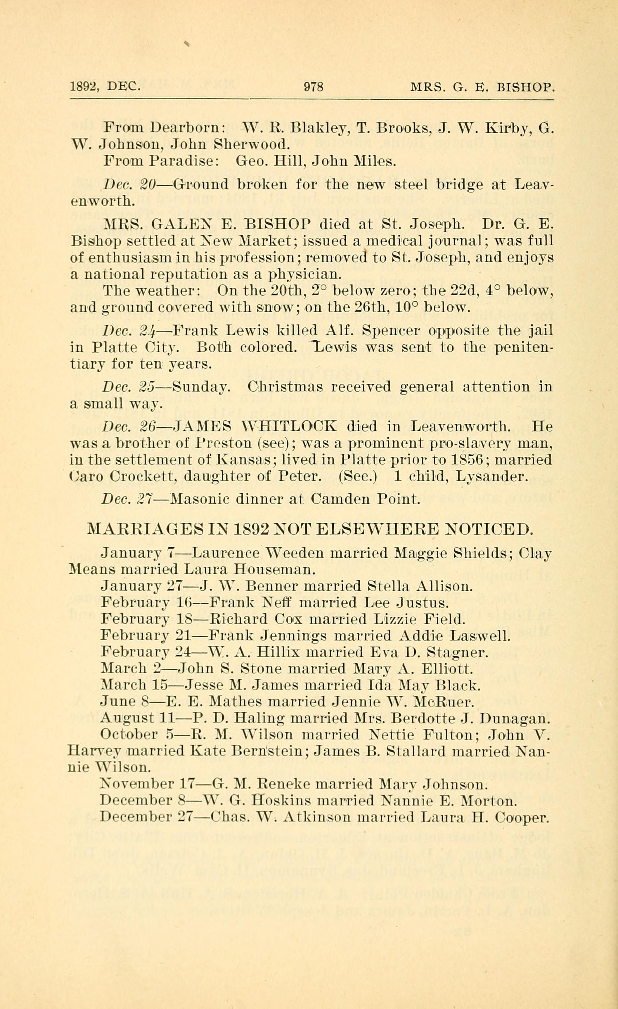 MARRIAGES IN 1892 NOT ELSEWHERE NOTICED.