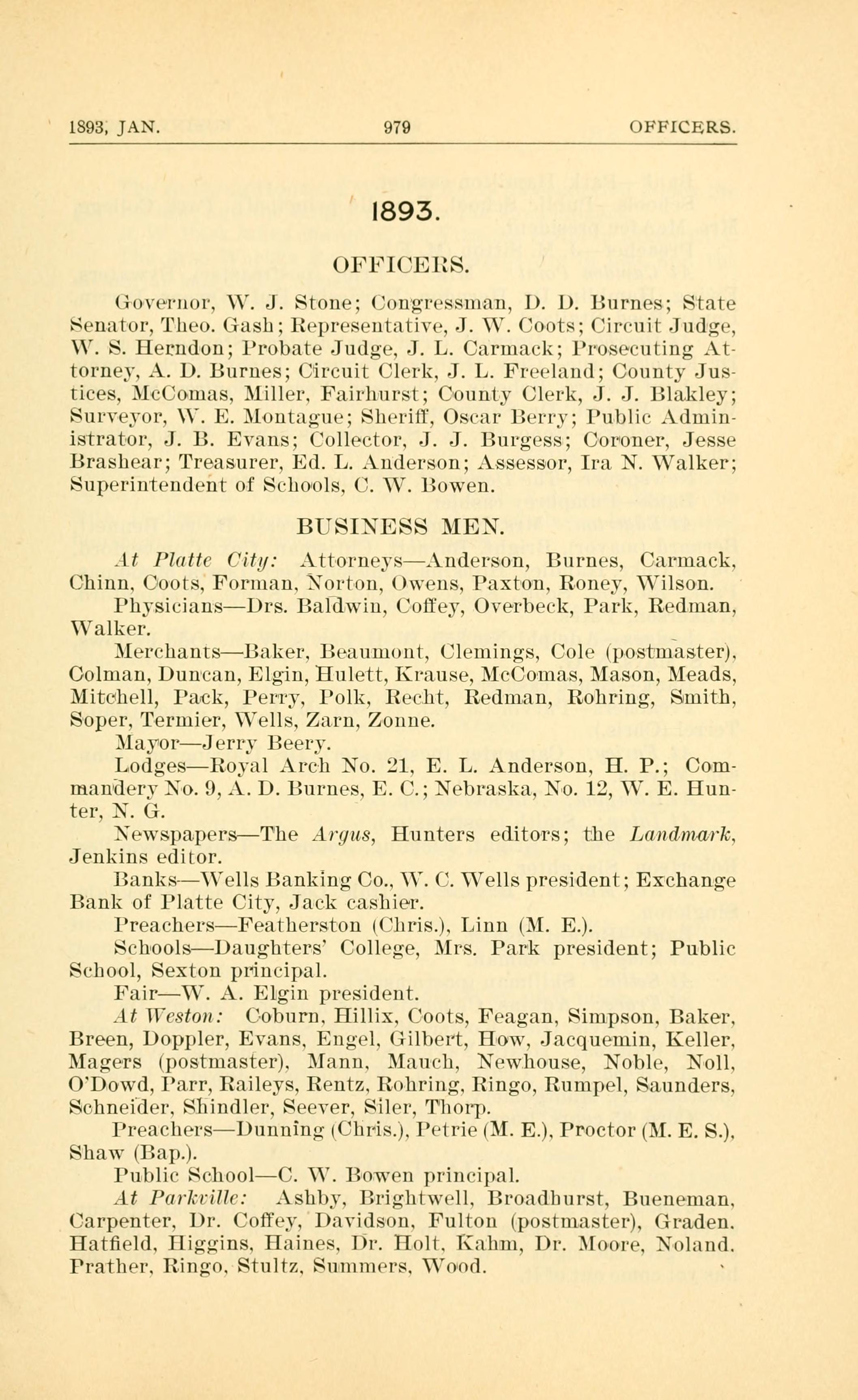 Brashear; Treasurer, Ed. L. Anderson; Assessor, Ira N. Va1ker;