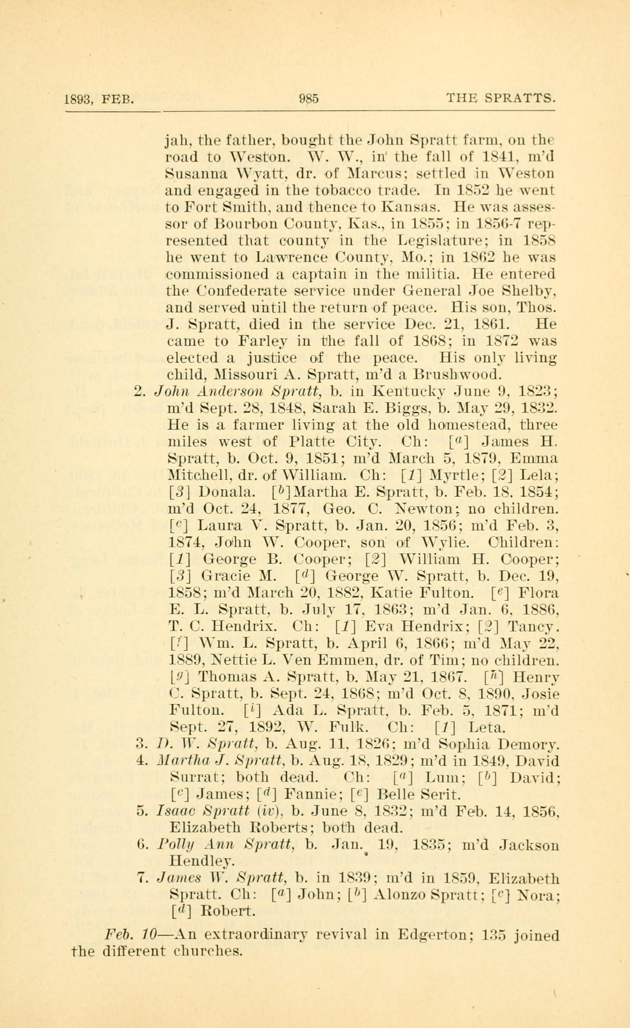 2. John .1mlerson Spratt, b. in Kelitucky June 9. 18:33;