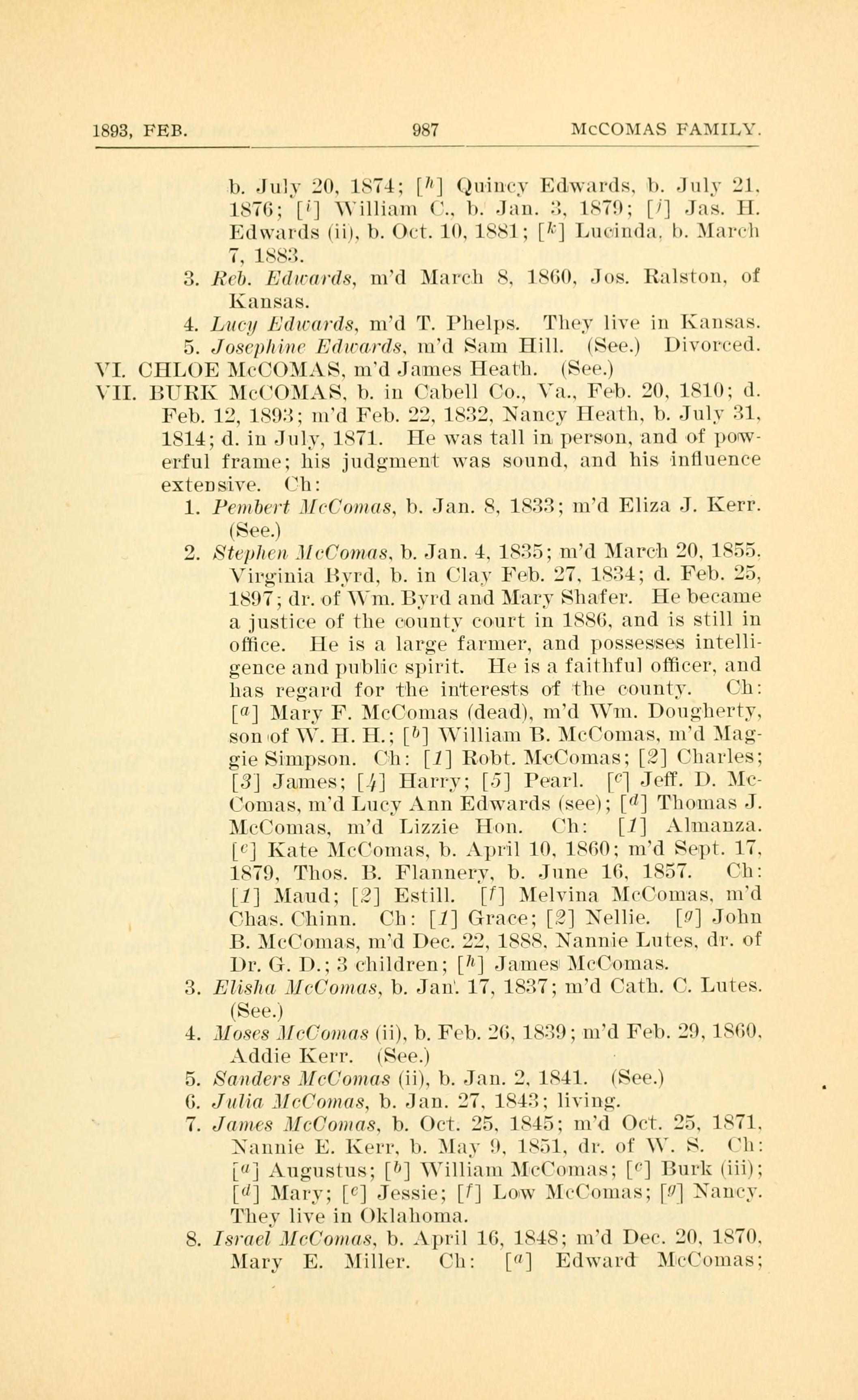 VII. BURK McCOMAS, married Nancy Heath