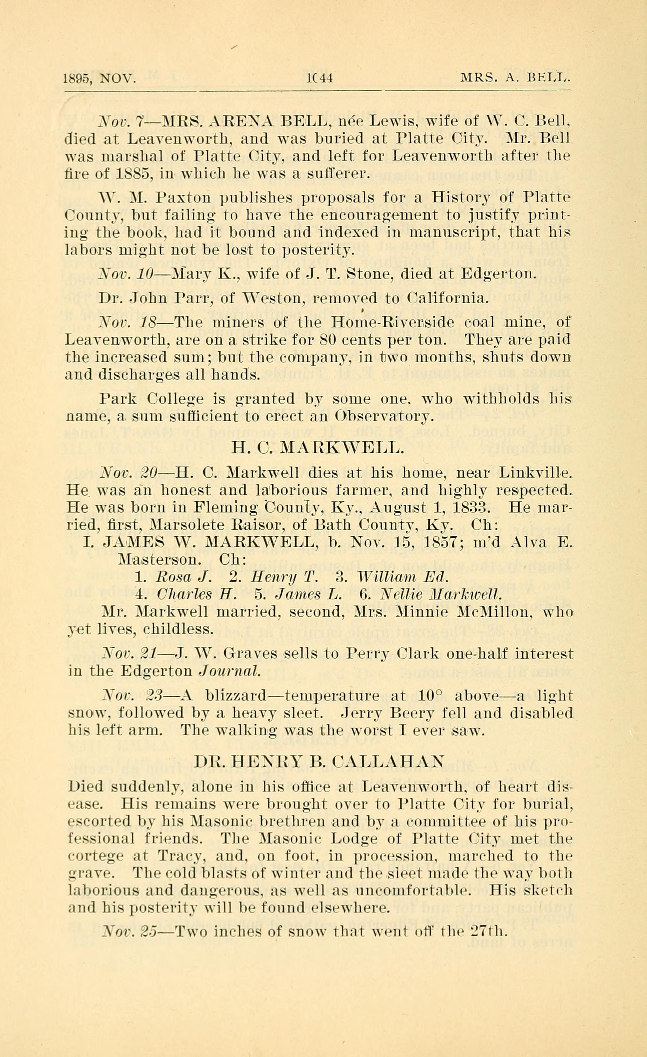 died at Leavenworth. and was buried at Platte City. Mr. lell