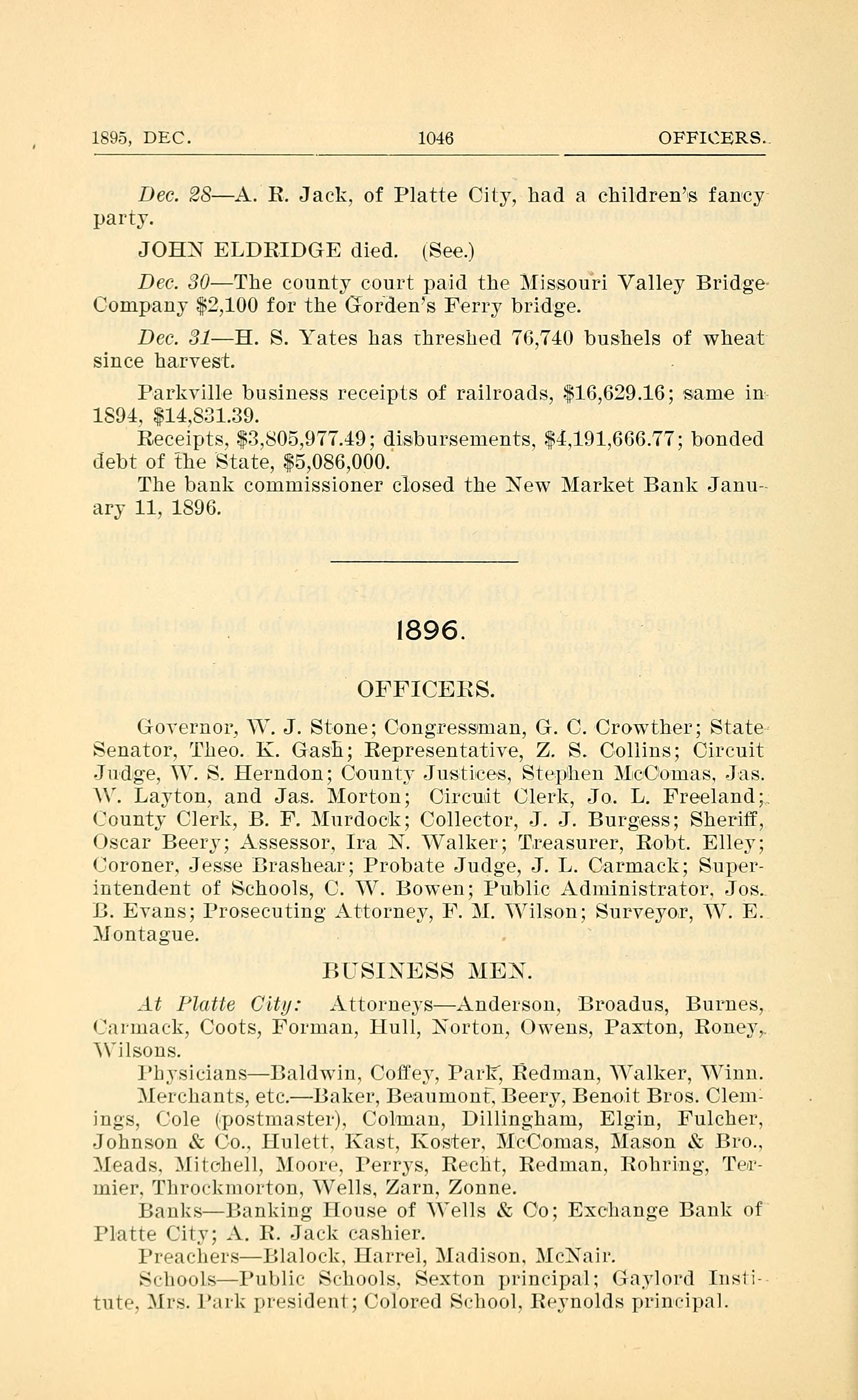 Dec. 28 - A. R. Jack, of Platte City, had a children's fancy party.