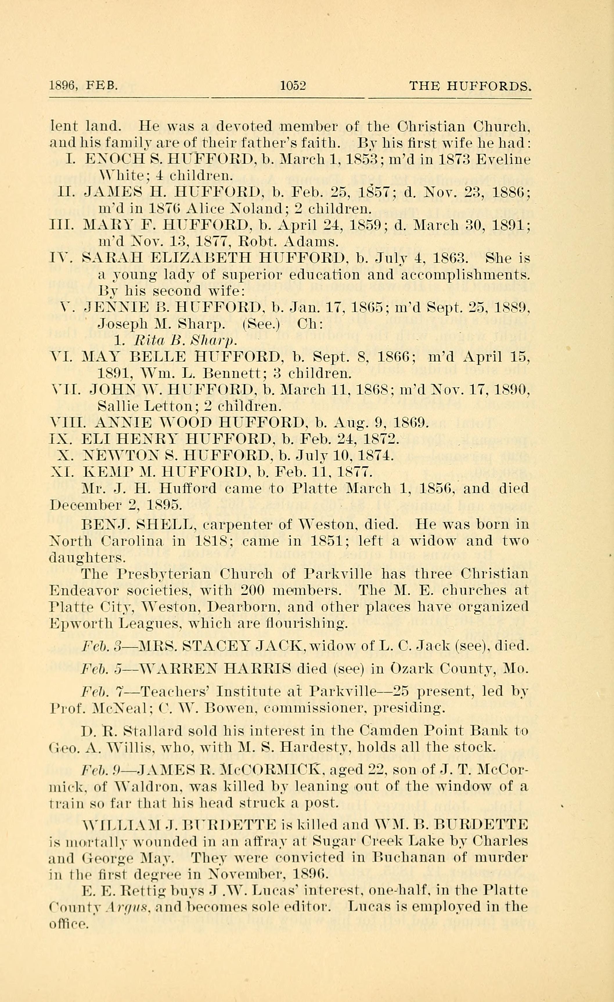 1896, FEB. 1052 THE HUFFORDS