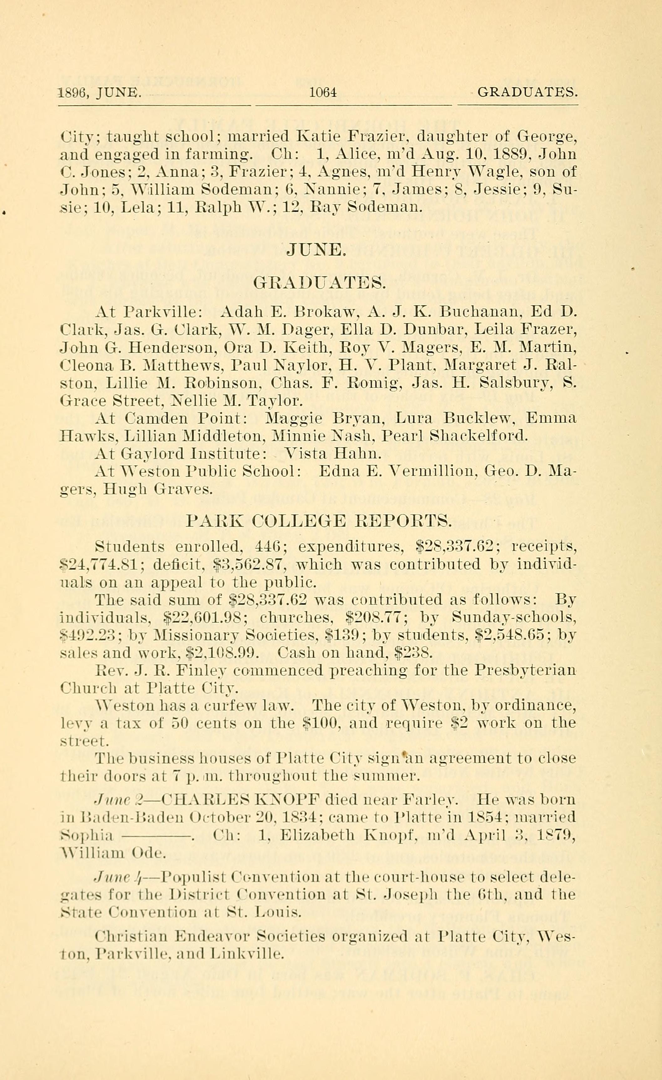 1896, JUNE. 1064 GRADUATES.