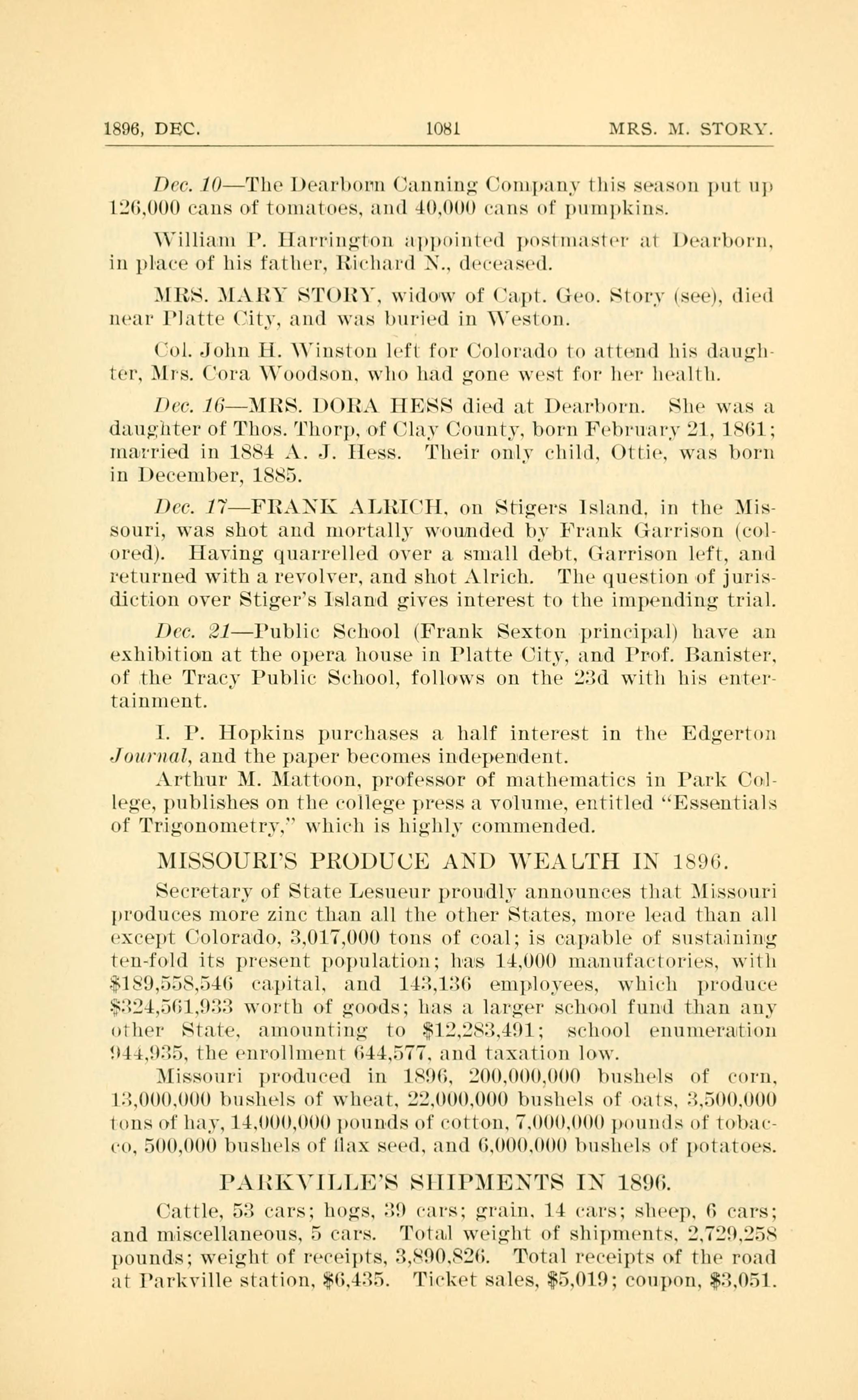 PAl{KVILl.ES SIIIPMENTS IN 1896.