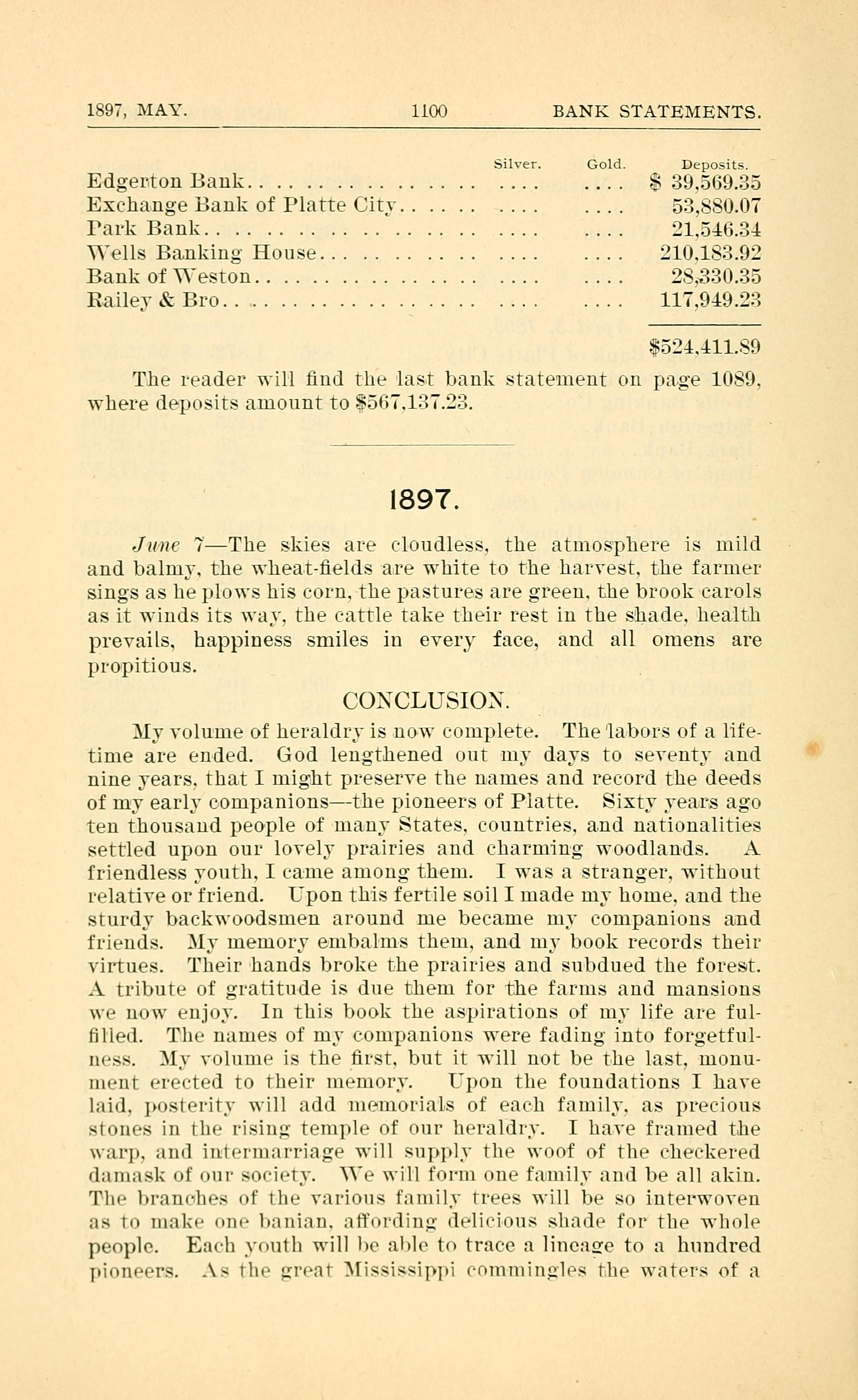 1897, MAY. 1100 BANK STATEMENTS.